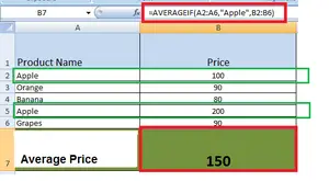 Eksempel 2 : For at få gennemsnittet af prisen på det navngivne produkt: Æble :