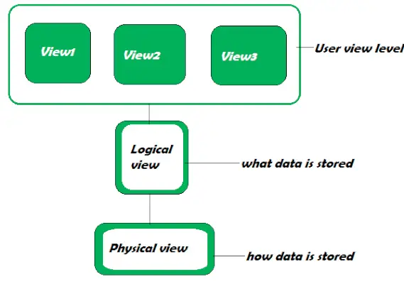 Den beskriver data gemt i databasen og relationerne mellem dataene. Programmørerne arbejder generelt på dette niveau, da de er opmærksomme på de funktioner, der er nødvendige for at opretholde relationerne mellem dataene.